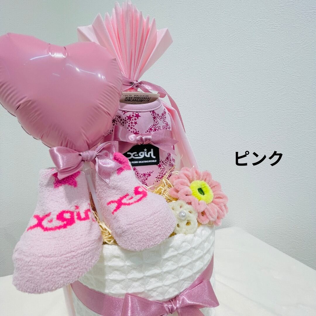 【X-girl】おむつケーキ エックスガールステージス ベビーギフト 出産祝い おむつケーキ ベビーシャワーベビーソックス